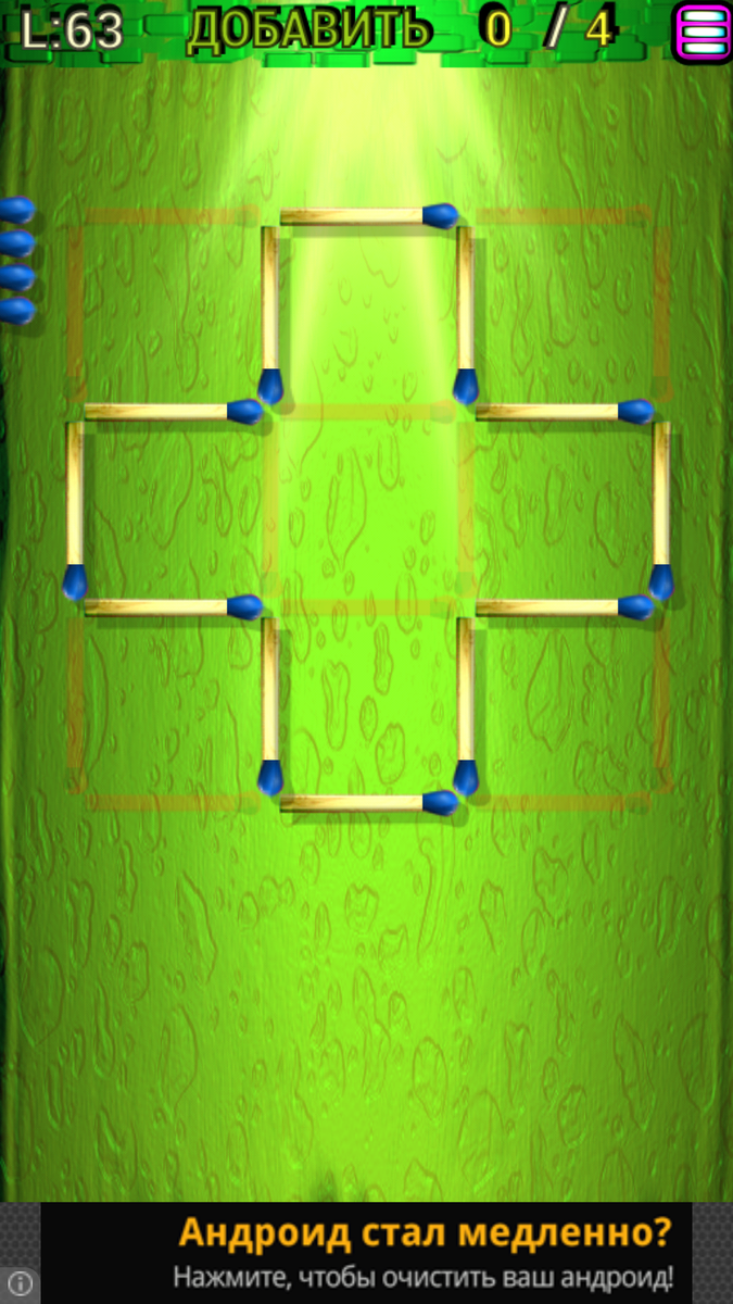 Нужно вставить 4 спички в середину но тогда получится 5 квадратов