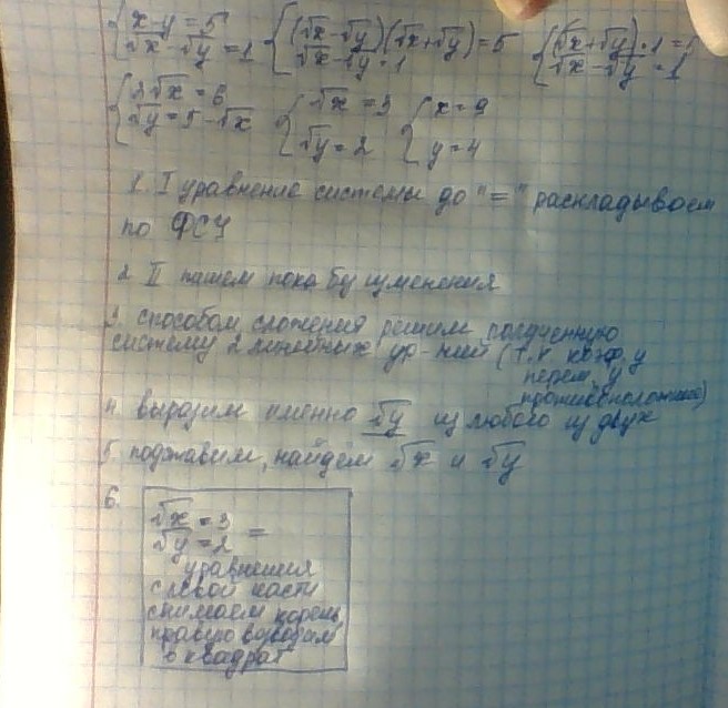 √x - √y =1;(корень квадратный из х минус корень квадратный из у равен 1)