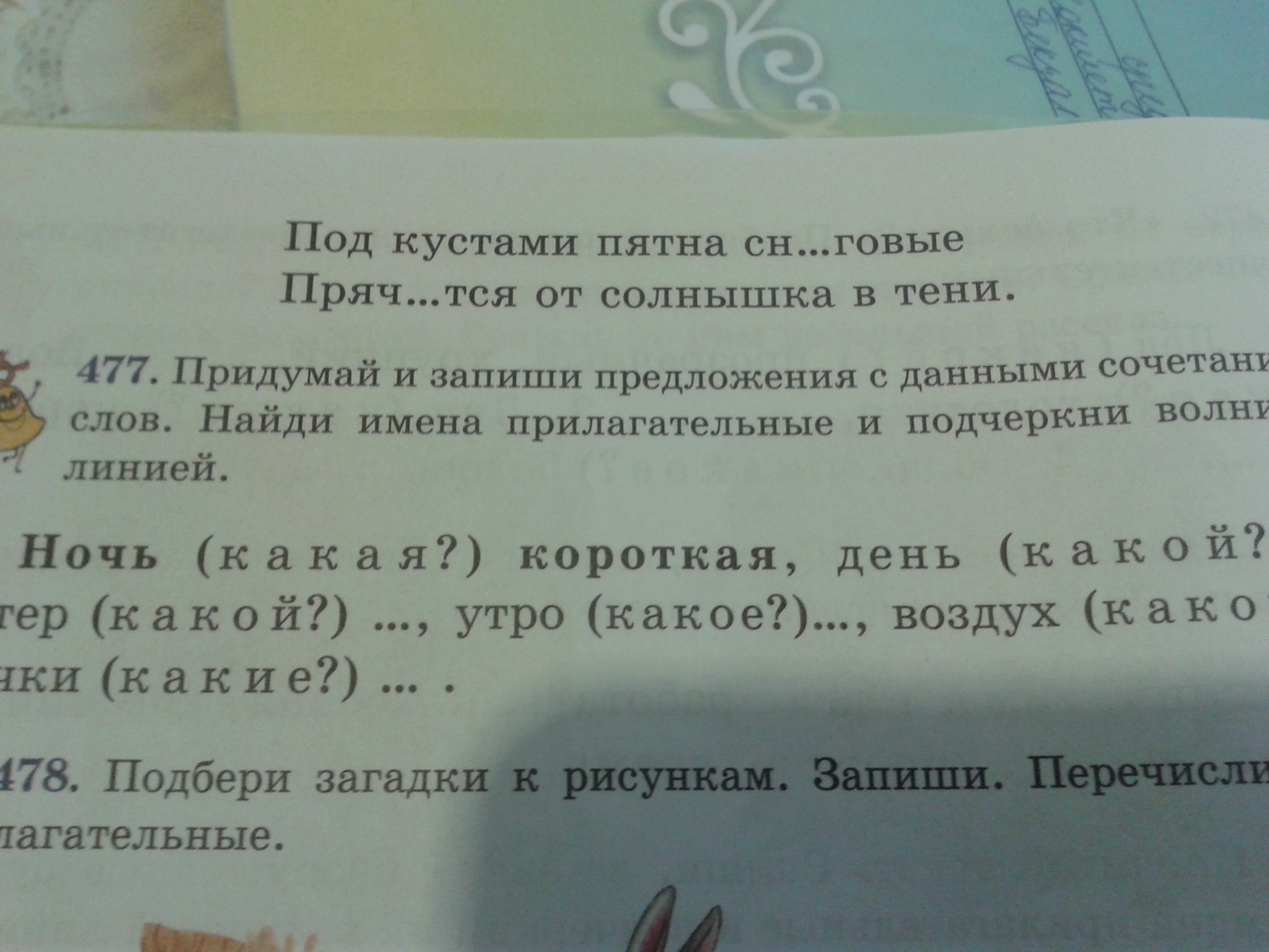 Ночь (какая?) ... , день (какой?)... , ветер (какой?)... , ветер (какое?)... , воздух (какой?)... , почки (какие?)... .