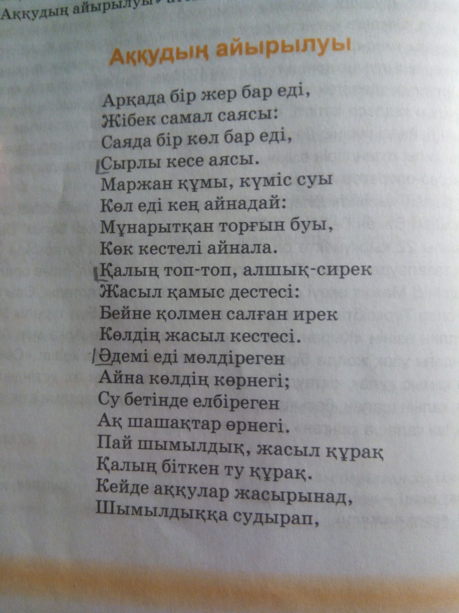 существительные:жер,қамыс,су, шашақтар,аққулар,жібек,құстар,су,көл,қаз,шағала