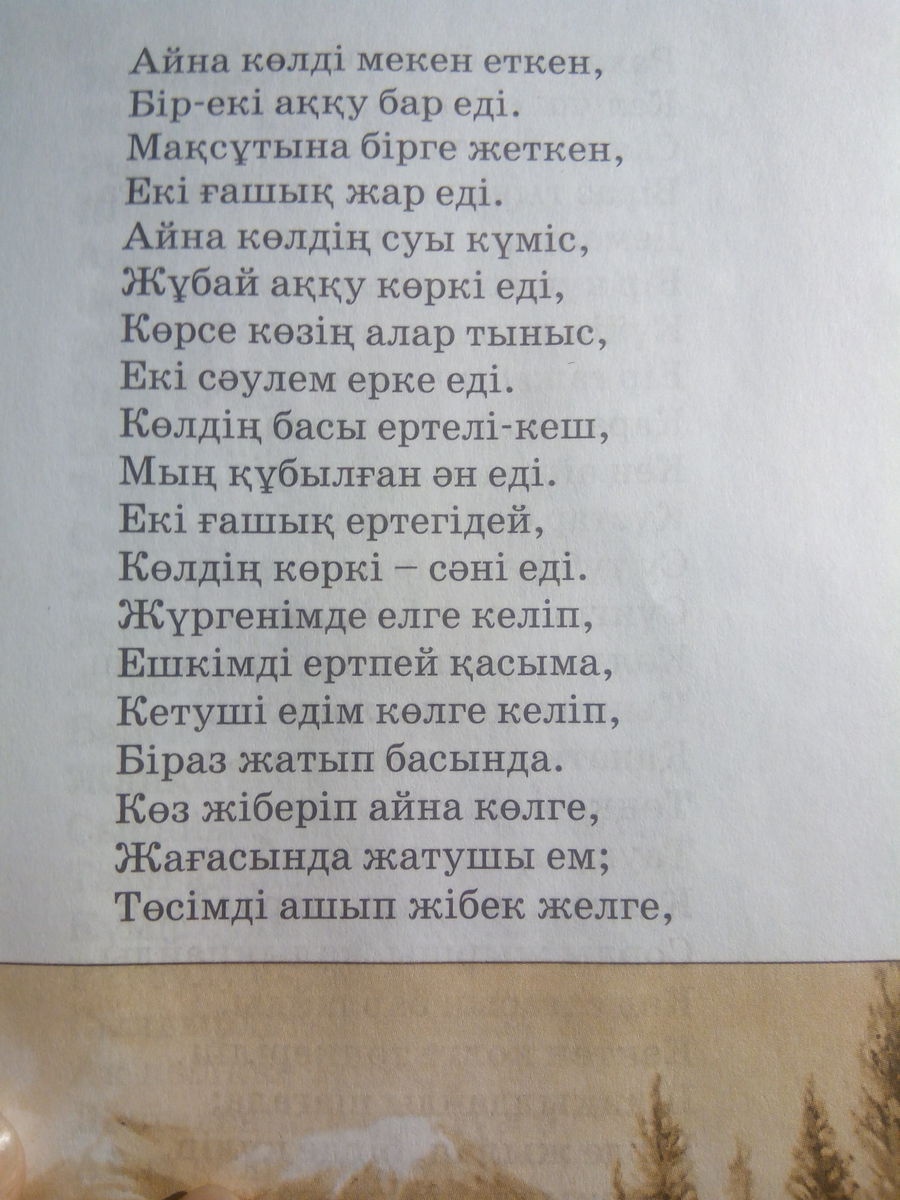 Прилагательные:күміс,кең, қалың,жасыл,әдемі,ақ,ерке,