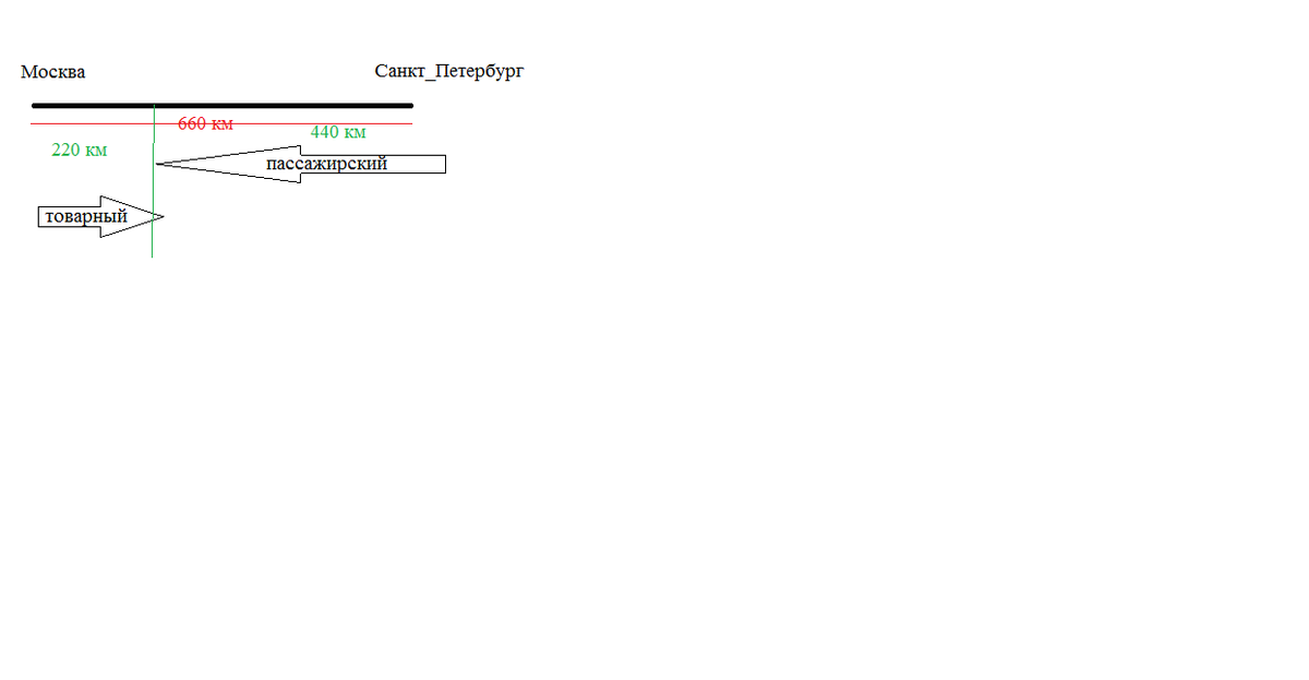 товарный едет от Москвы и проедет 220 км до встречи с пассажирским.
