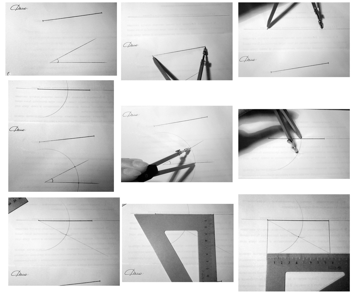 Проводим любую прямую, отмечает на ней замеренную длину.