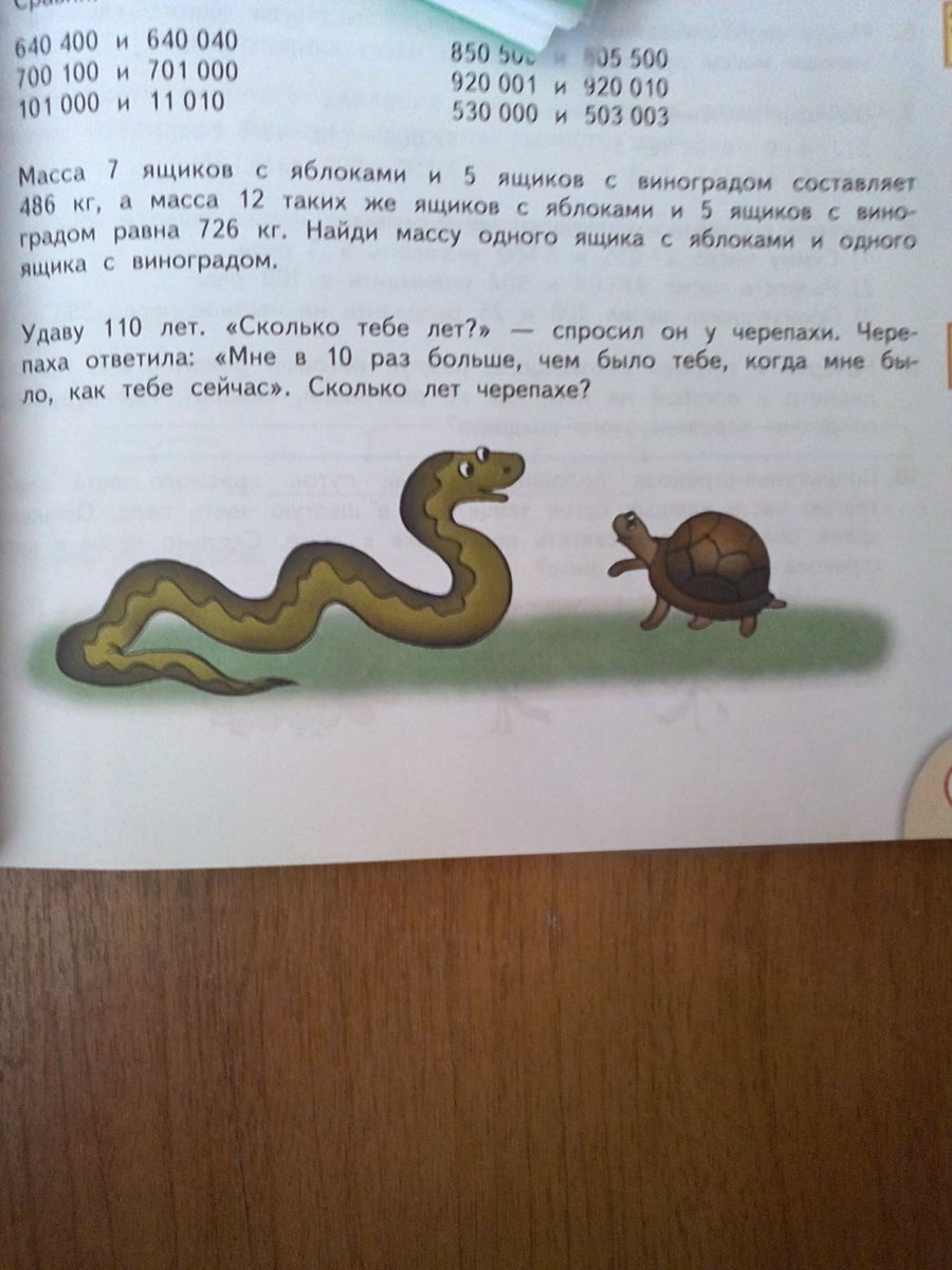 пусть удаву было х лет ,а черепахе в это же время было 110 лет