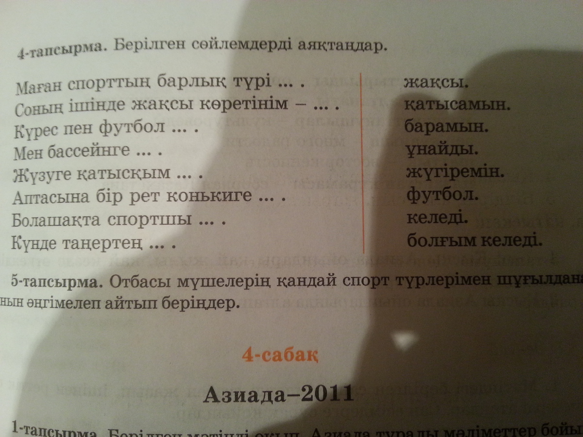1)ұнайды. 2)футбол. 3)жақсы. 4)барамын. 5)келеді. 6)қатысамын. 7)болғым келеді. 8)жүгіремін