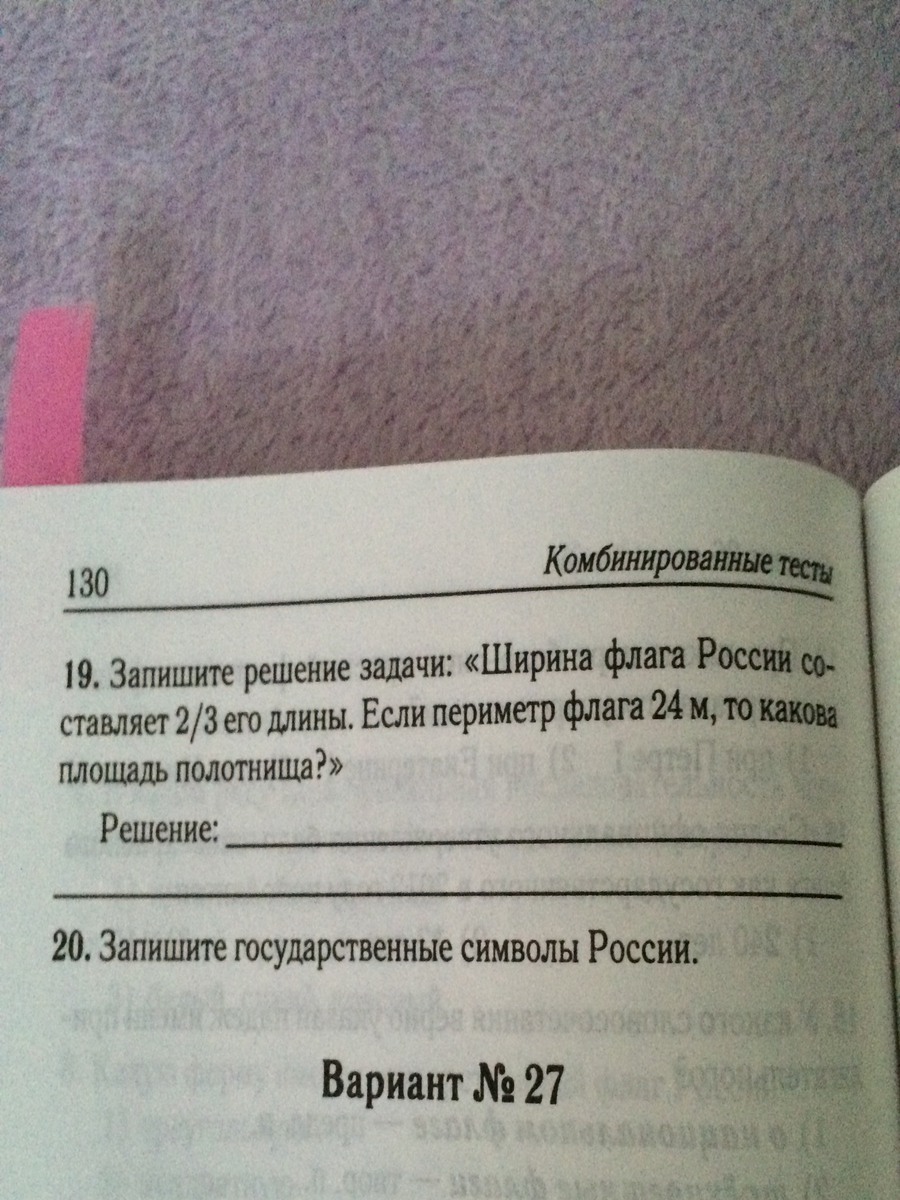 Запишите решение задачи ширина флага России составляет 2/3 его длины если периметр флага 24 м то какова площадь полотнища