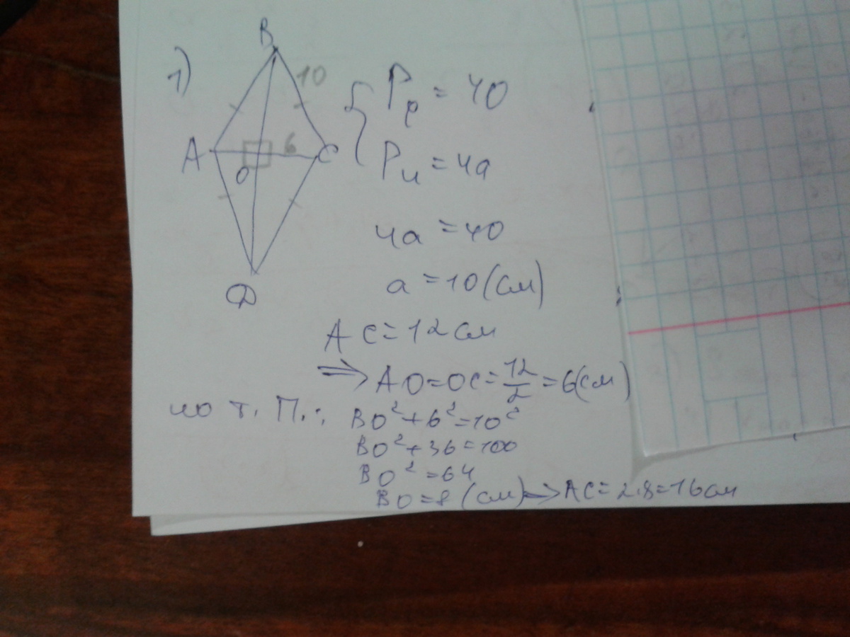в начале идет периметр ромба, а потом? почерк не понятен мне