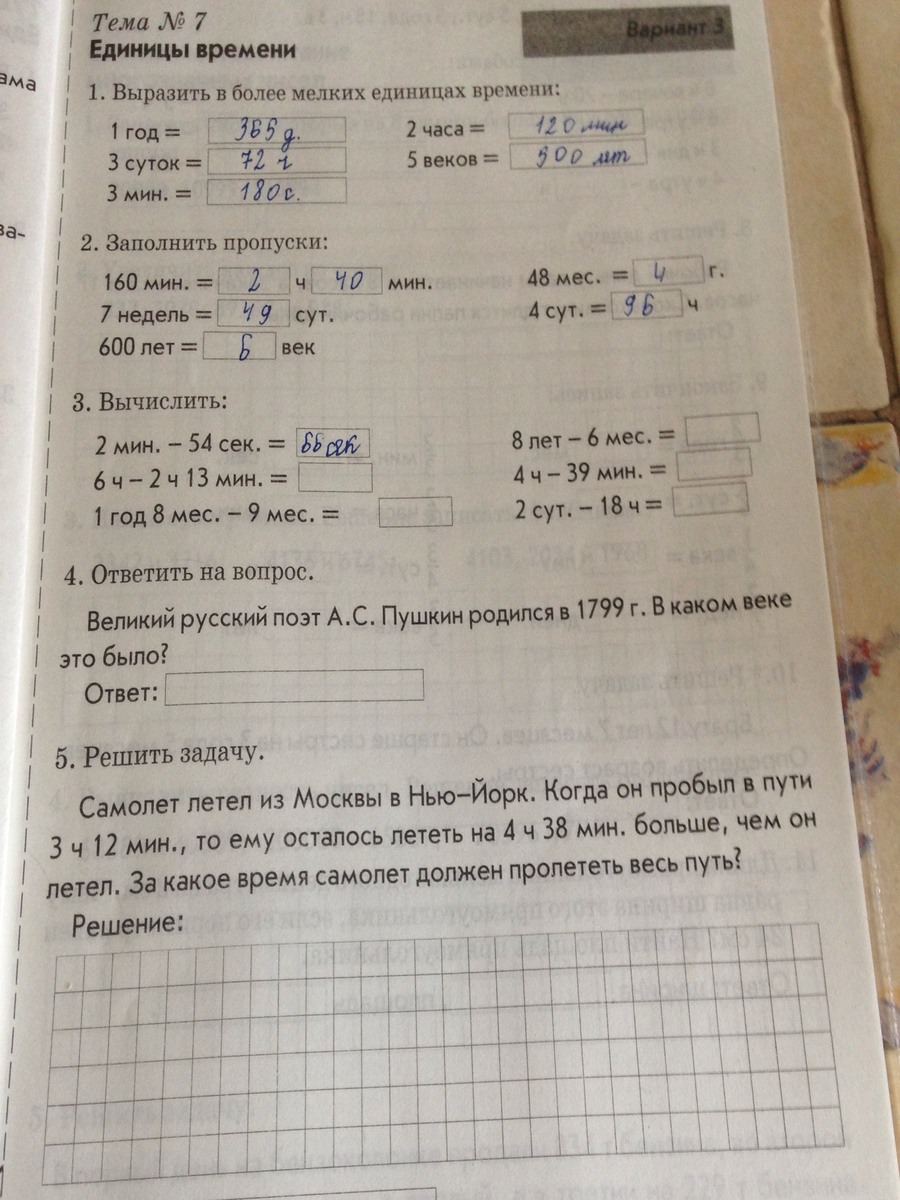 4задание -18век, 5задание-3ч12мин+4ч38мин=7ч50мин(осталось лететь) 7ч50ми+3ч12мин=11ч02мин(время за которое самолет пролетит весь путь)
