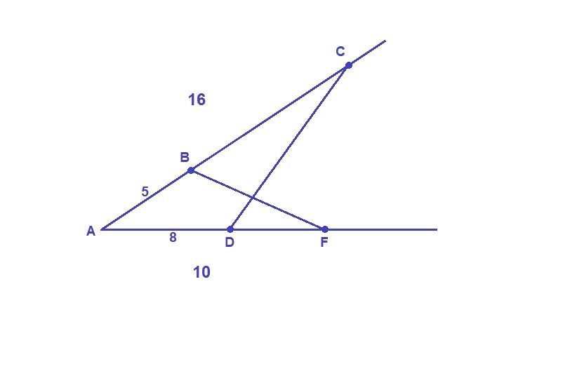 на одной из сторон данного угла А отложены отрезки АВ=5 см и АС=16 на другой стороне этого же угла отложены AD=8см AF =10см . подобны ли треугольники ACD и AFB ? ответ обоснуйте