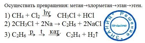3)C2H6 = (над стрелкой температура, давление, катализатор) C2H4 + H2 (стрелка в верх)