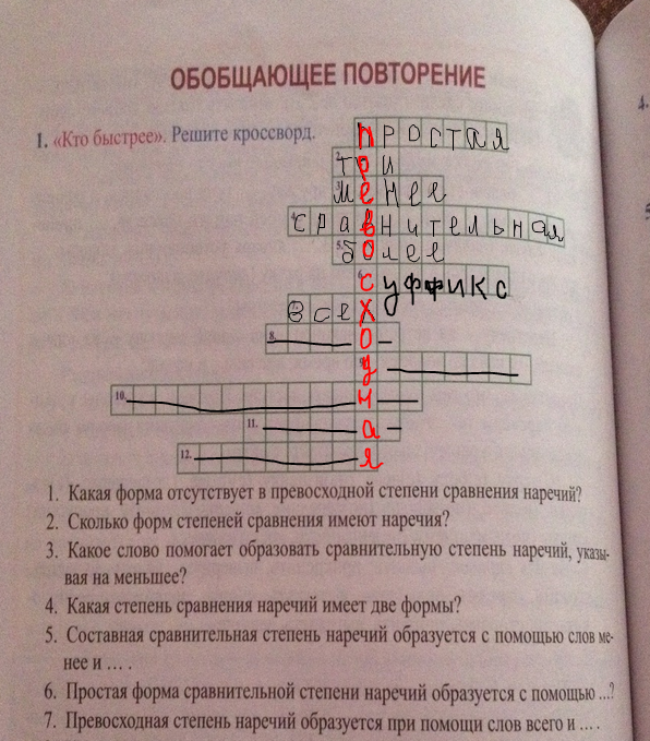 1)простая.2)три. 3)менее. 4)сравнительная.5)более. 6)суффикс.7)всех.8)глагол.9)действия