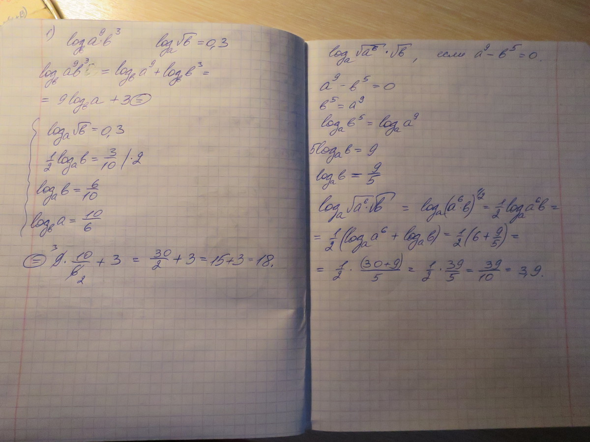 2) Найти log √a^6√b по основанию a, если a^9 - b^5 = 0