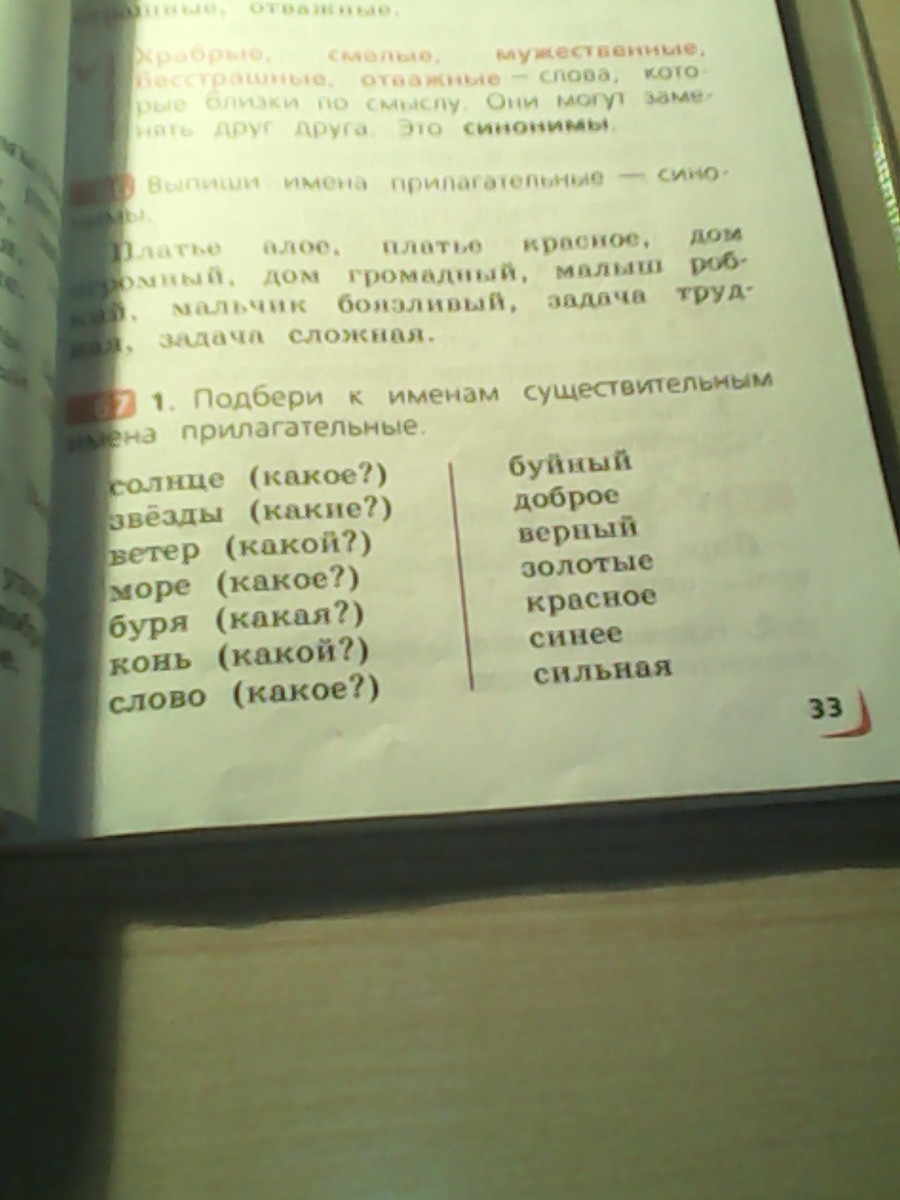 солнце какое?доброе,звёзды какие? золотые,ветер какой?буйный,море какое? красное,буря какая?сильная,конь какой?верный,слово какое?доброе