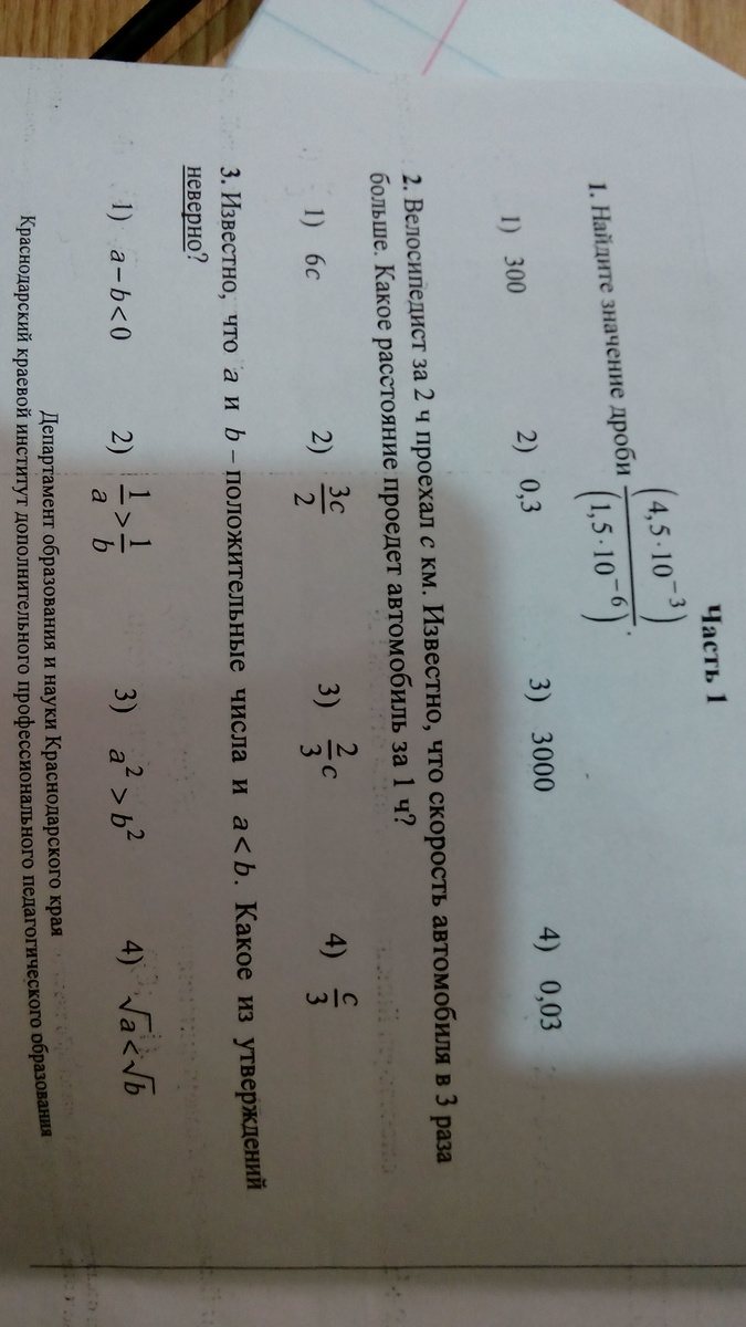 1) ответ 4. Потому что 4,5 /1,5 * 10 ^(-3+6) = 3* 10^(-3) = 0,03