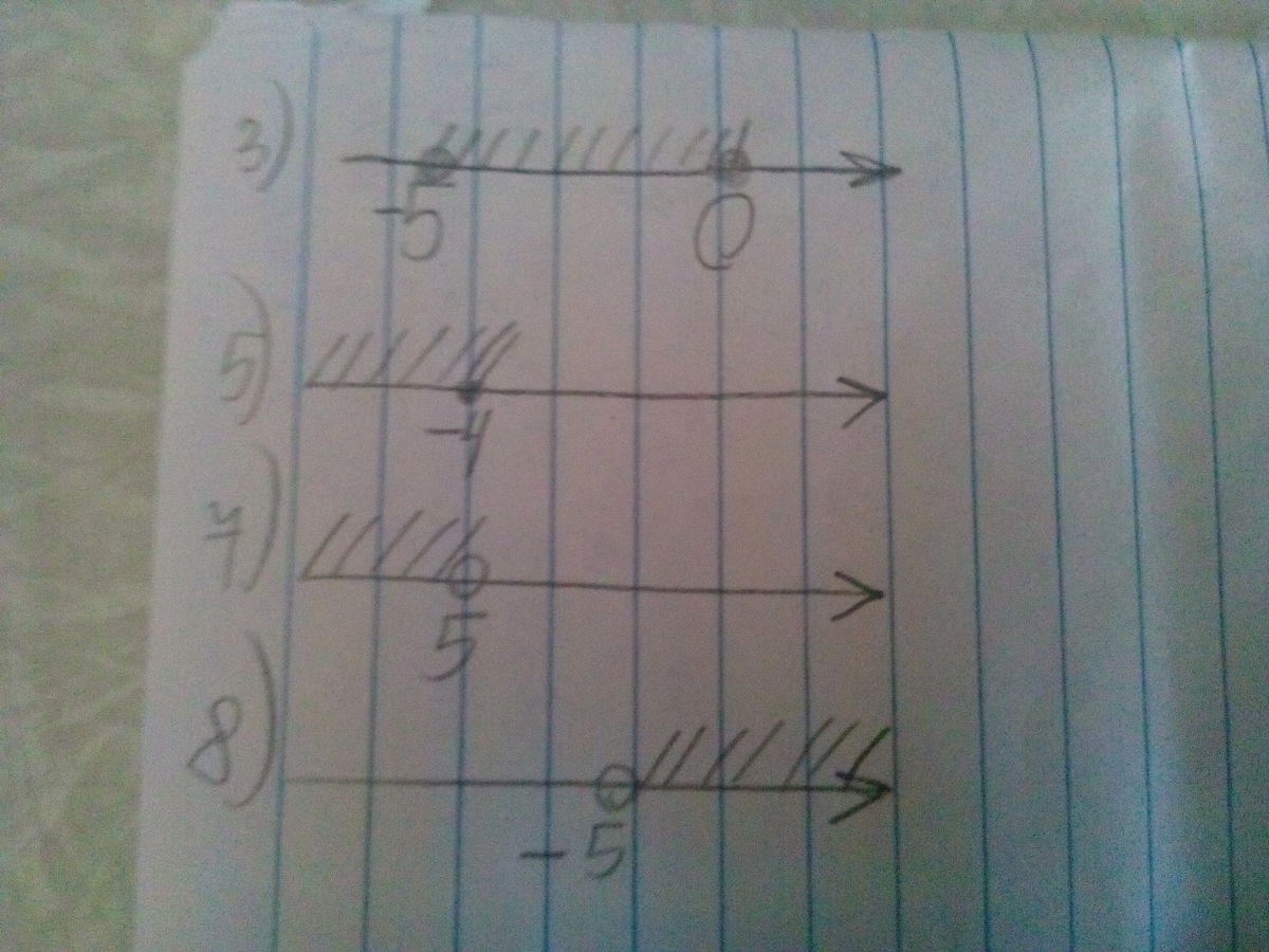 3) [-5;0]; 5) (-бесконечность;-4]; 7) (-бесконечность;5); 8) (-5;+бесконечность)