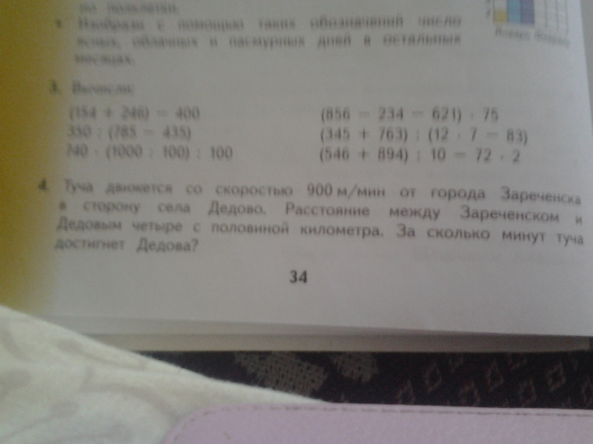 туча движется со скоростью 900м /мин от города Зареченска в сторону села дедово .Расстояние между Зареченском и Дедовым четыре с половиной километра . За сколько минут туча достигнет Дедова?