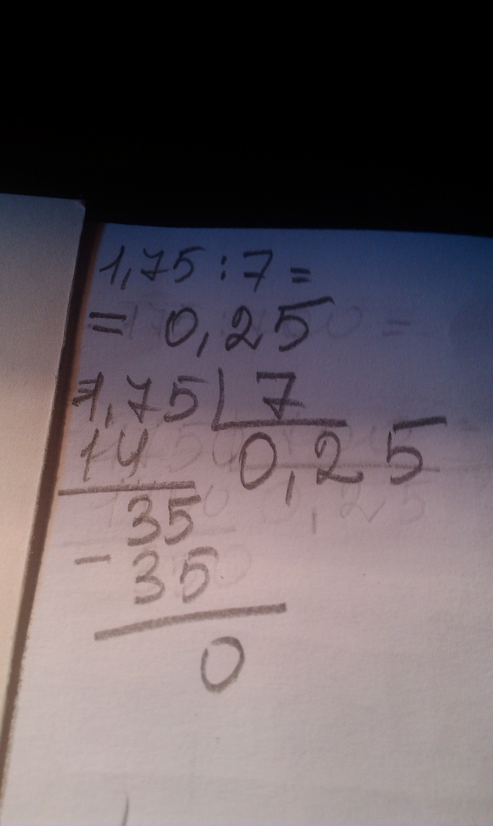 ПОЖАЛУЙСТА РАЗДЕЛИТЕ ДРОБЬ 1,75 НА 7!! ПИСЬМЕННО!
