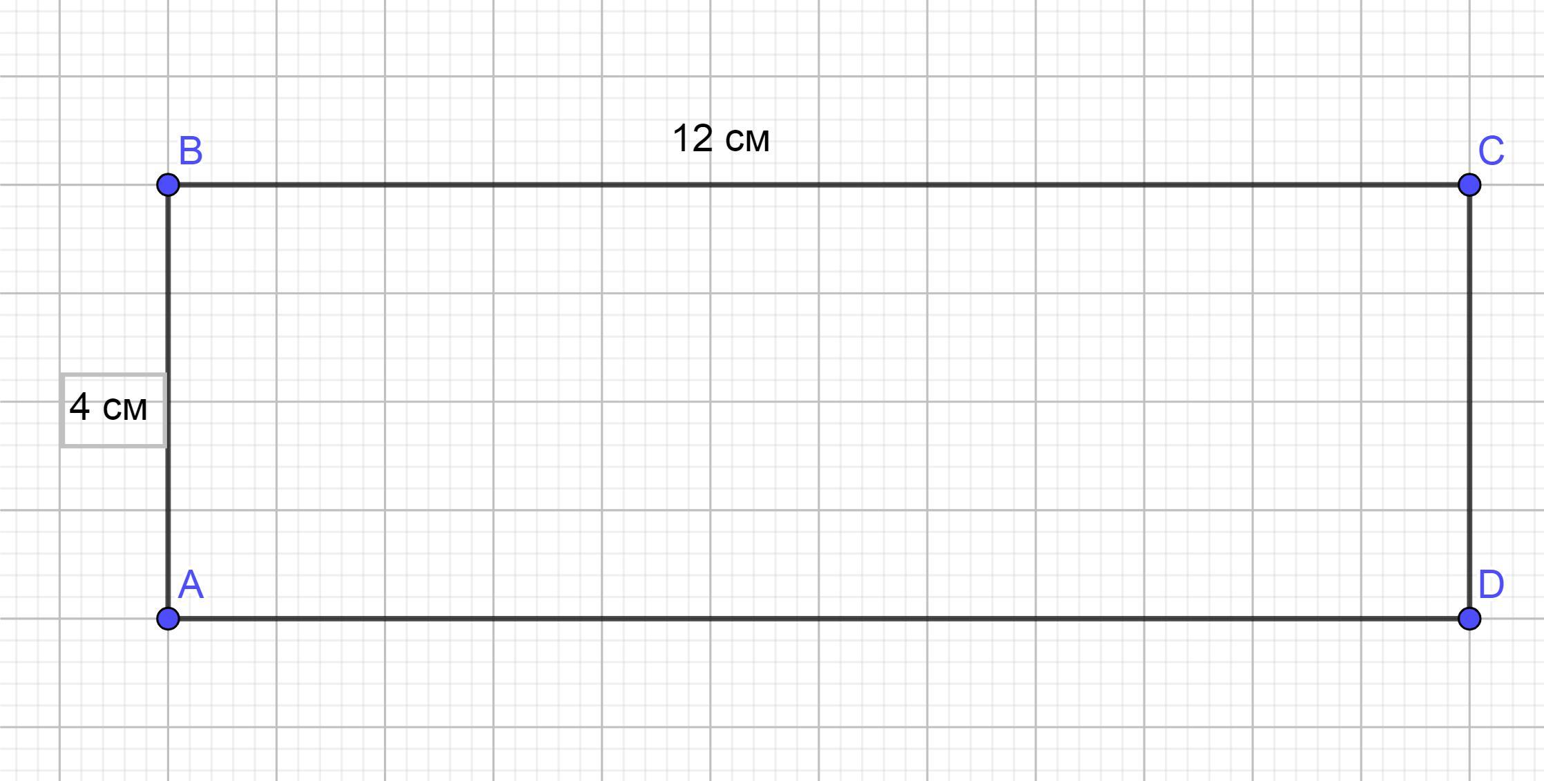 Начерти прямоугольник, ширина которого 4 см, что составляет 1/3 часть его длины. Найди периметр прямоугольника