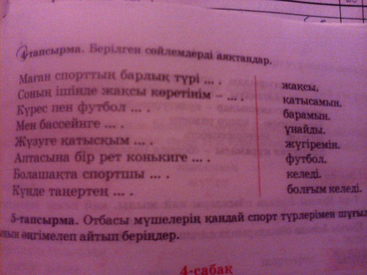 1) жаксы 2) футбол 3) унайды 4) катысамын 5) келед! 6) барамын 7) болгым келеди 8) жугиремин