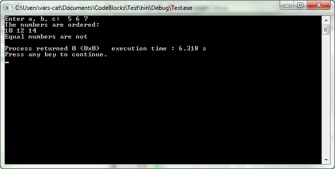 cout << "Enter a, b, c: "; //Вводить через пробел