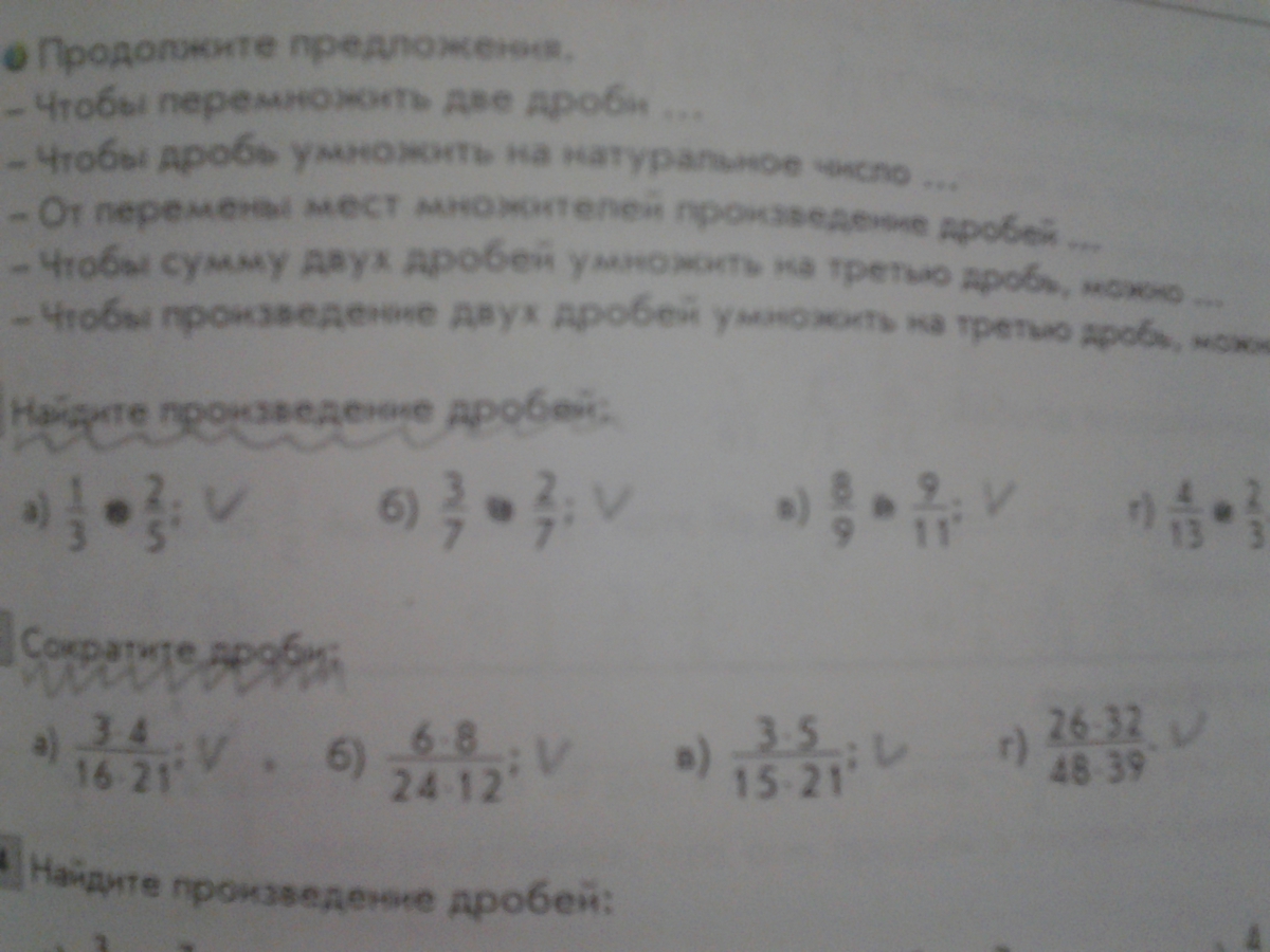 Зделайте пожалуйста умаляю!!!! То что подчёркнуто. 1 найди произведение дробей. 2 сократи дроби