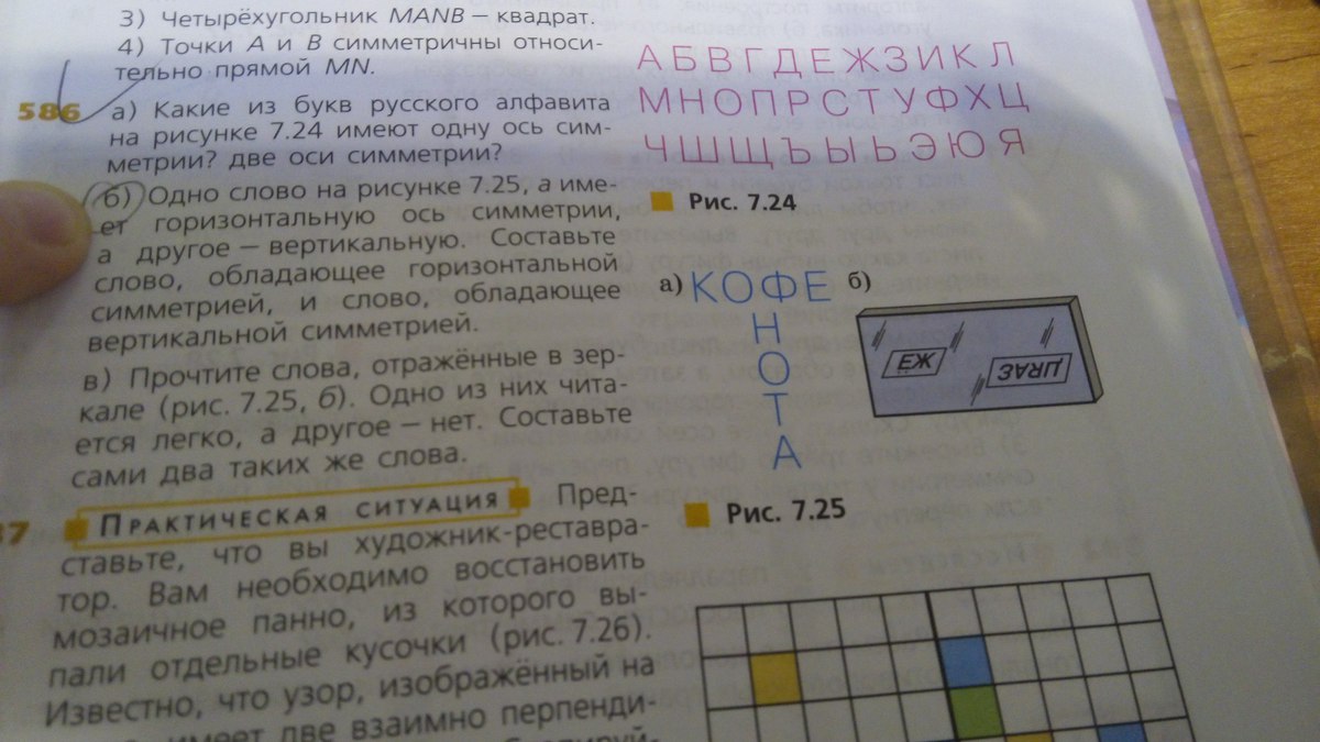 одно слово на рисунке 7.25, а имеет горизонтальную ось симетрии, а другое - вертикальную.