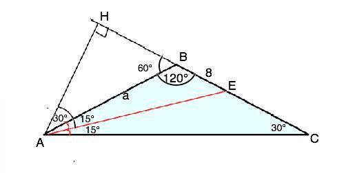 Биссектриса АЕ делит угол ВАС на два по 30°:2=15°. Тогда в прямоугольном треугольнике НАЕ ∠НАЕ=<НАВ+ <ВАЕ=30°+15°=45°. Сумма острых углов прямоугольного треугольника 90°, поэтому ∠НЕА=45°⇒ ∆ АНЕ - прямоугольный равнобедренный (по свойству), и ЕН=АН=a√3/2