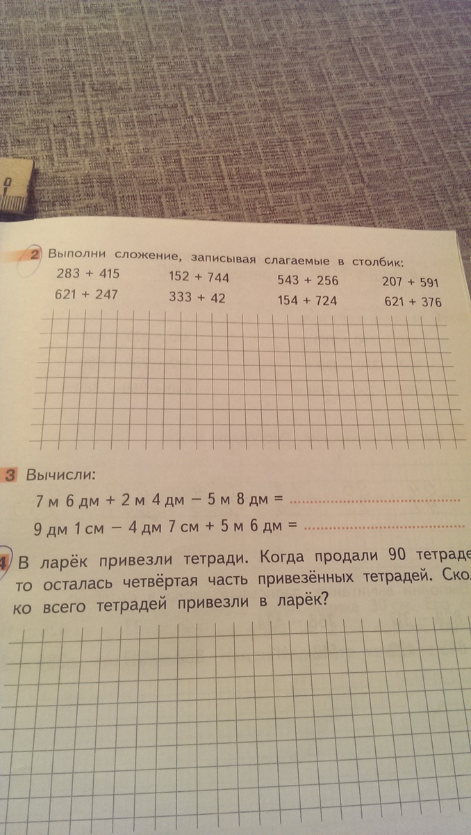 Тость если осталась одна четвертая, то три четвертых продали тоесть 90 тетрадей, значит одна четвертая оставшихся это 30 тетрадей( 90/3=30),