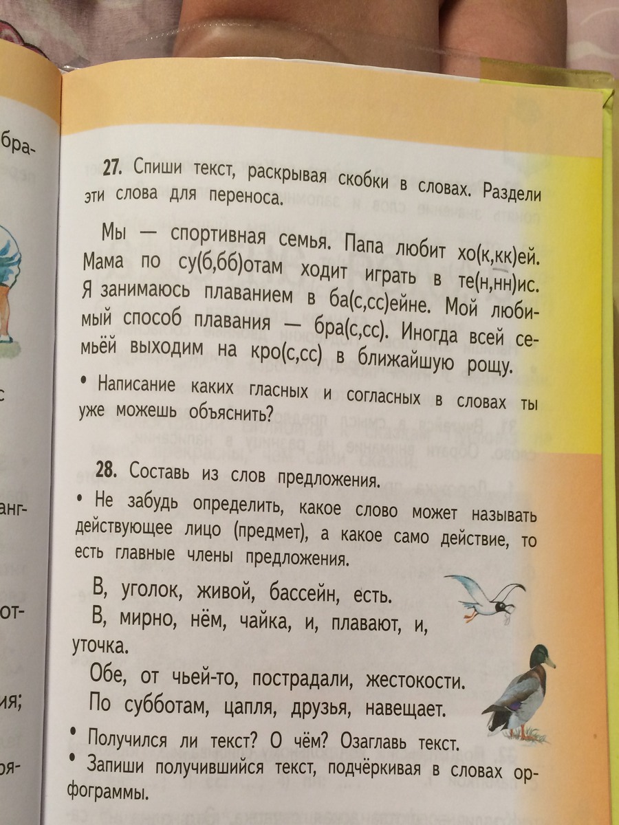 27.хоккей; по субботам; в теннис; в бассейне; брасс; кросс.