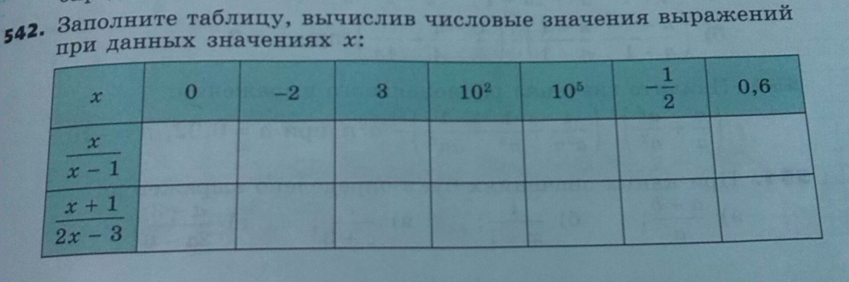 Решите пожалуйста номер 542.Надо заполнить таблицу.Даю 30 баллов.Самый первый и правильный ответ выберу лучшим.