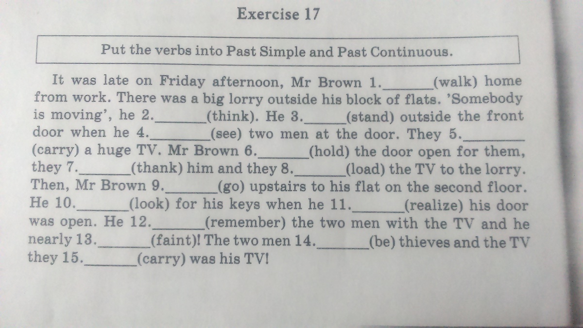 все глаголы в Past Simple или Past Continuous. Спасибо большое заранее! очень нужна помощь!