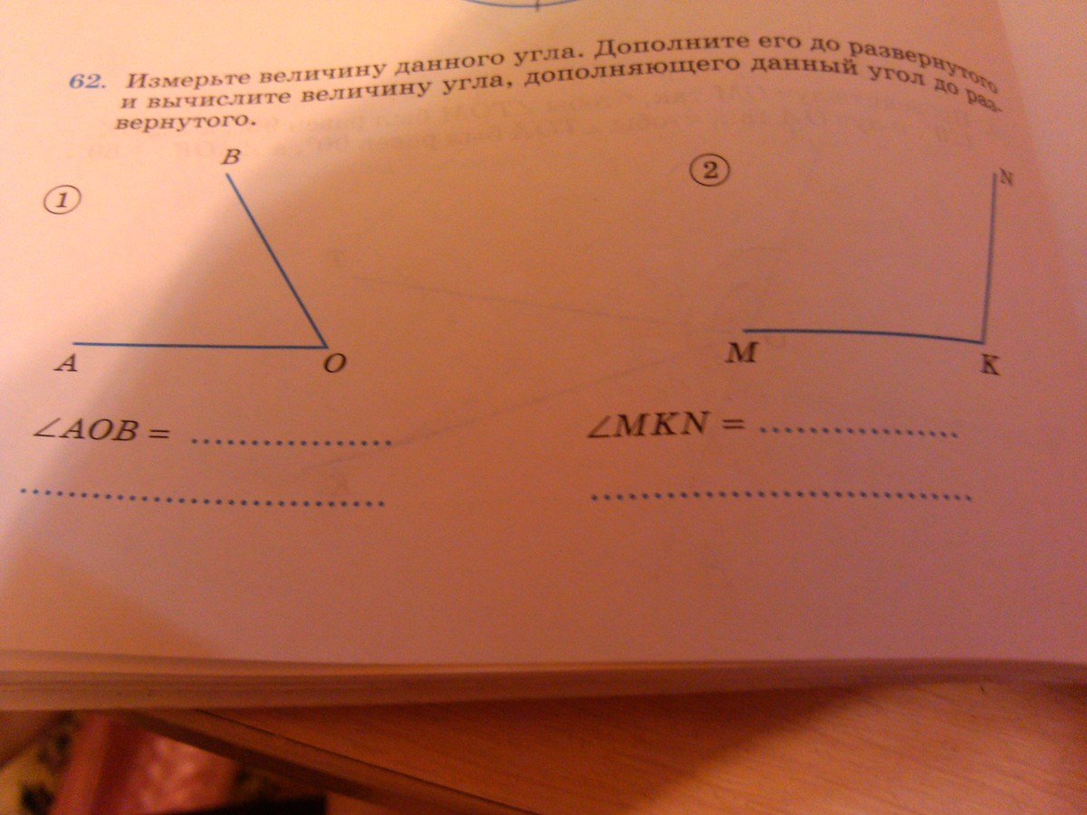 измерьте величину данного угла дополните его до развёрнутого и вычислите величину угла дополняющего данный угол до развёрнутого