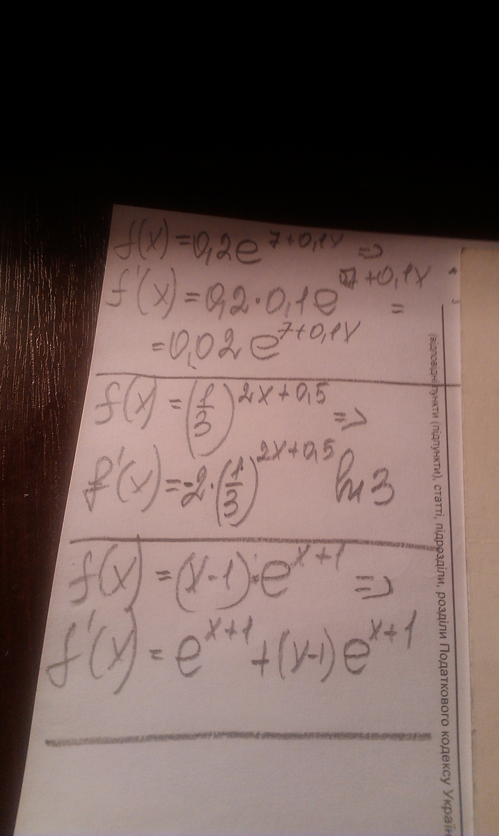 1 Найдите производную функции:1) f(x)=0,2*e в степени 7+0,1x