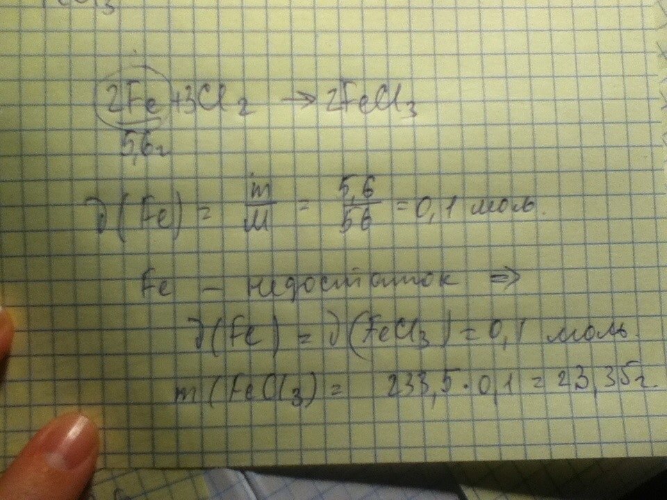 Вычислить массу хлорида железа 3 , который образуется при взаимодействии 5,6г железных стружек с хлором количеством 0,3 моль .Помогите пожалуйста очень надо .