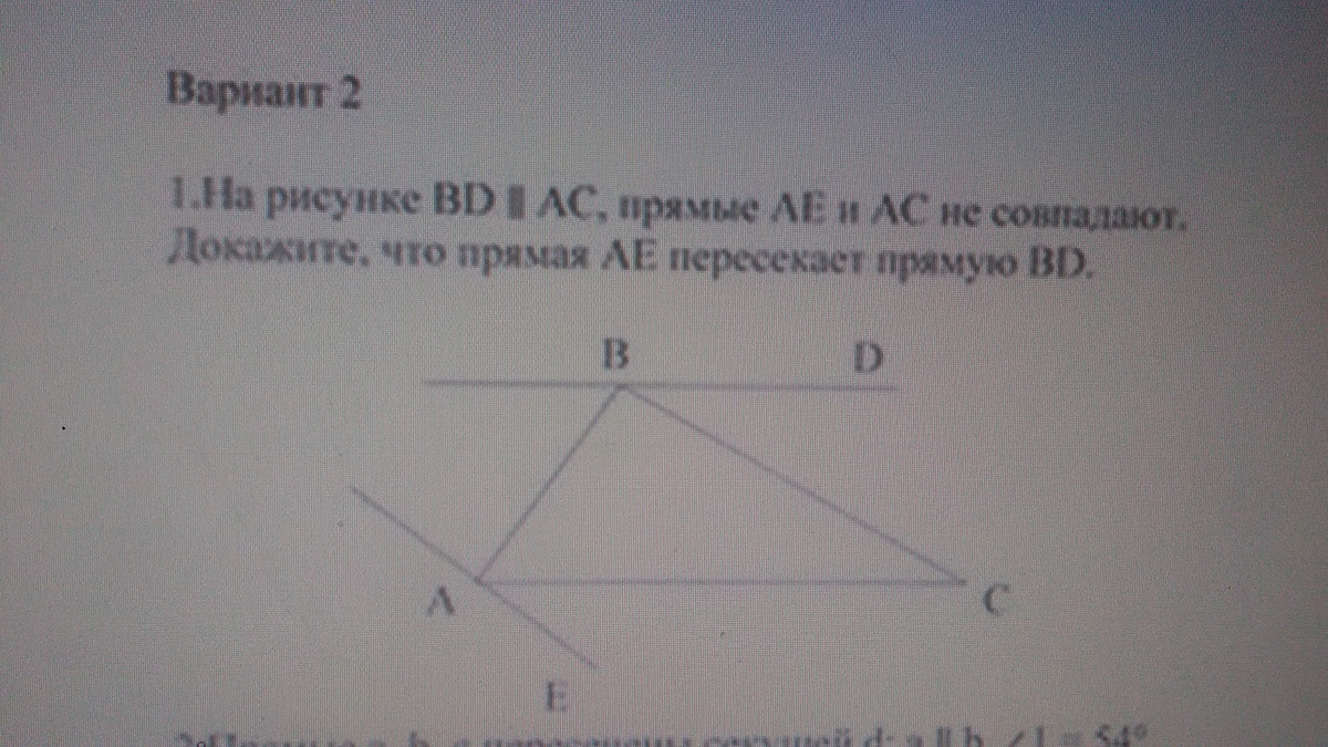 тк параллельные прямые не пересекаются и из того, что AE не совпадает с AC , следует, что AC пересекет BD. но вообще там какой-то признак используется