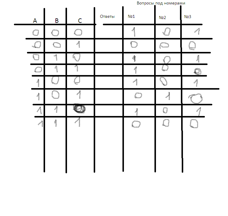 Вычислить значение логического выражения при всех возможных значениях логических величин A,B u C