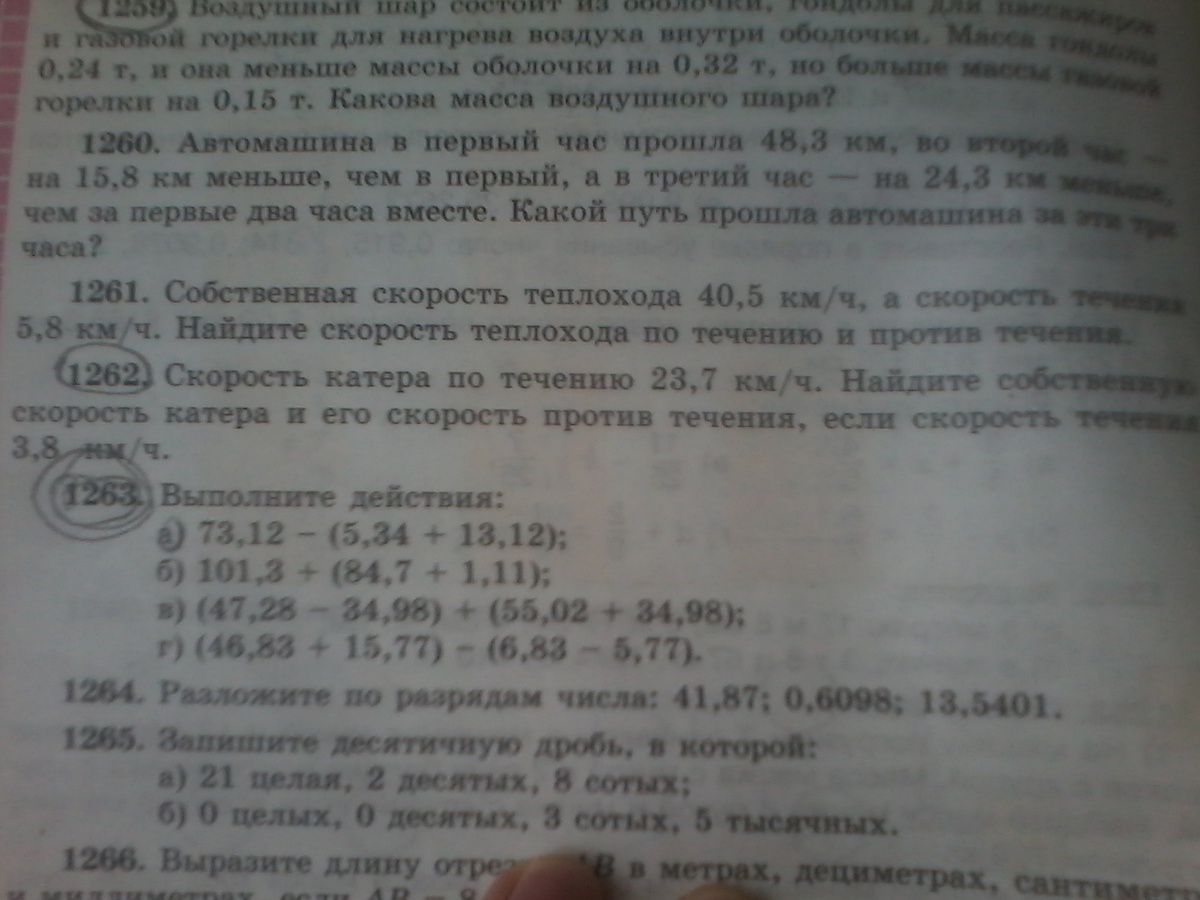 1262) Собственная скорость катера = 23,7 - 3,8 = 19,9 км/ч