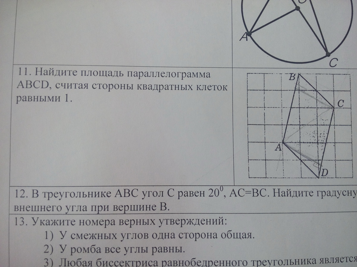 Найдите площадь параллелограмма ABCD,считая стороны квадратных клеток равными 1