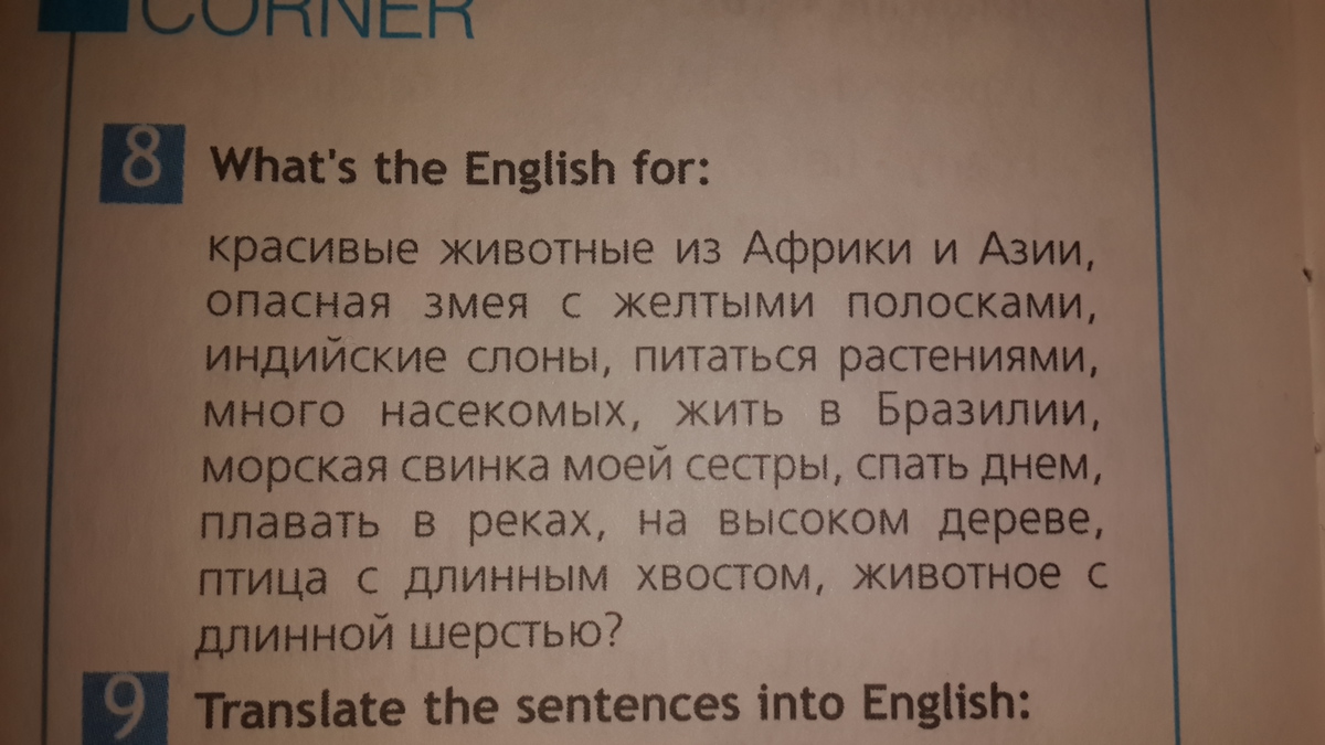 Beautiful animals from Africa and Asia,dangerous snake with yellow stripes,Indian elephant,eats plants,many insects,live in Brazil,Guinea pig my sisters to sleep during the day,swim in the river,on a high tree,bird with a long tail,dogs with long hair?