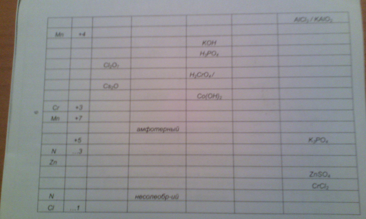 заполни таблицу составь формулы оксидов гидроксидов и солей соответствующих друг другу