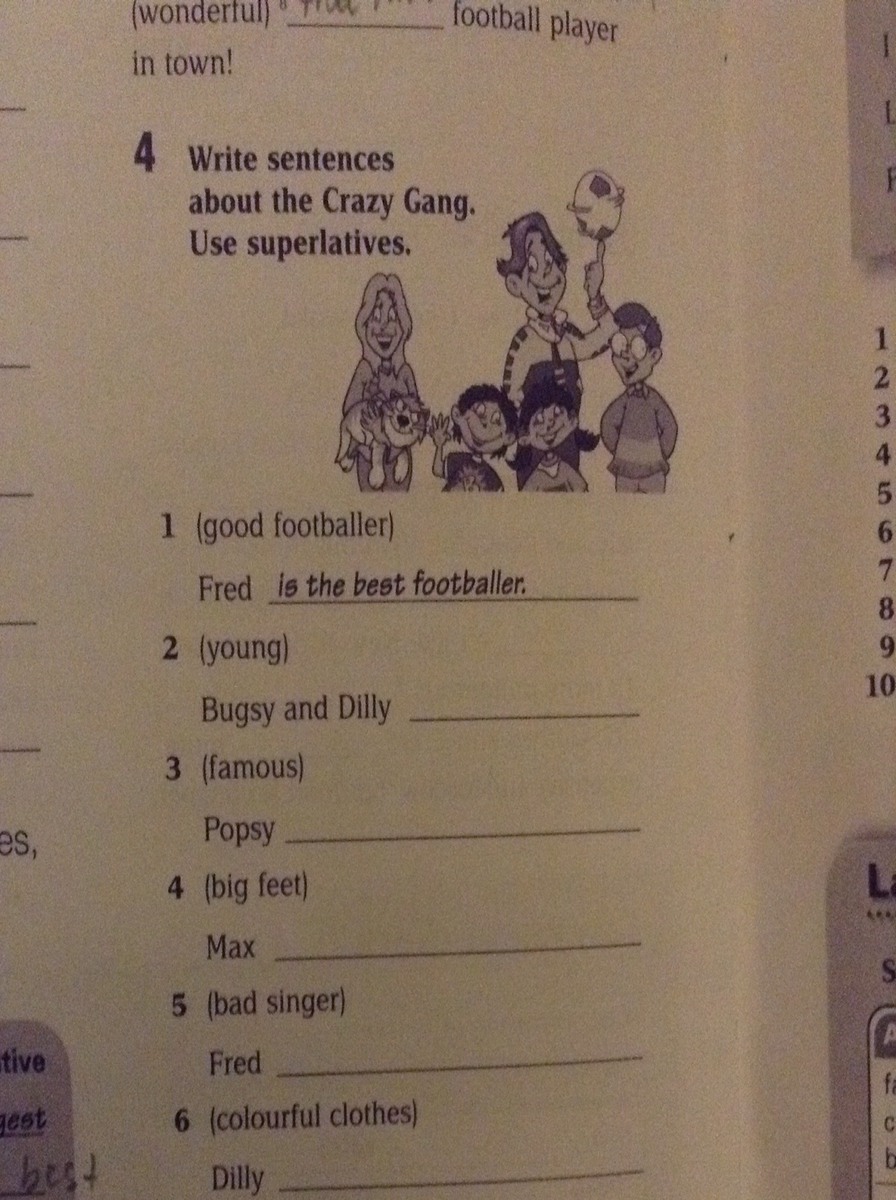 Написать предложений о Сумасшедшей Gang. Используйте превосходной степени.