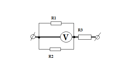 Знайти розподіл струмів і напруг між опорами якщо R1=3 Ом R2=12 ОмR3=5 Ом, а вольтметр показує 9,6.