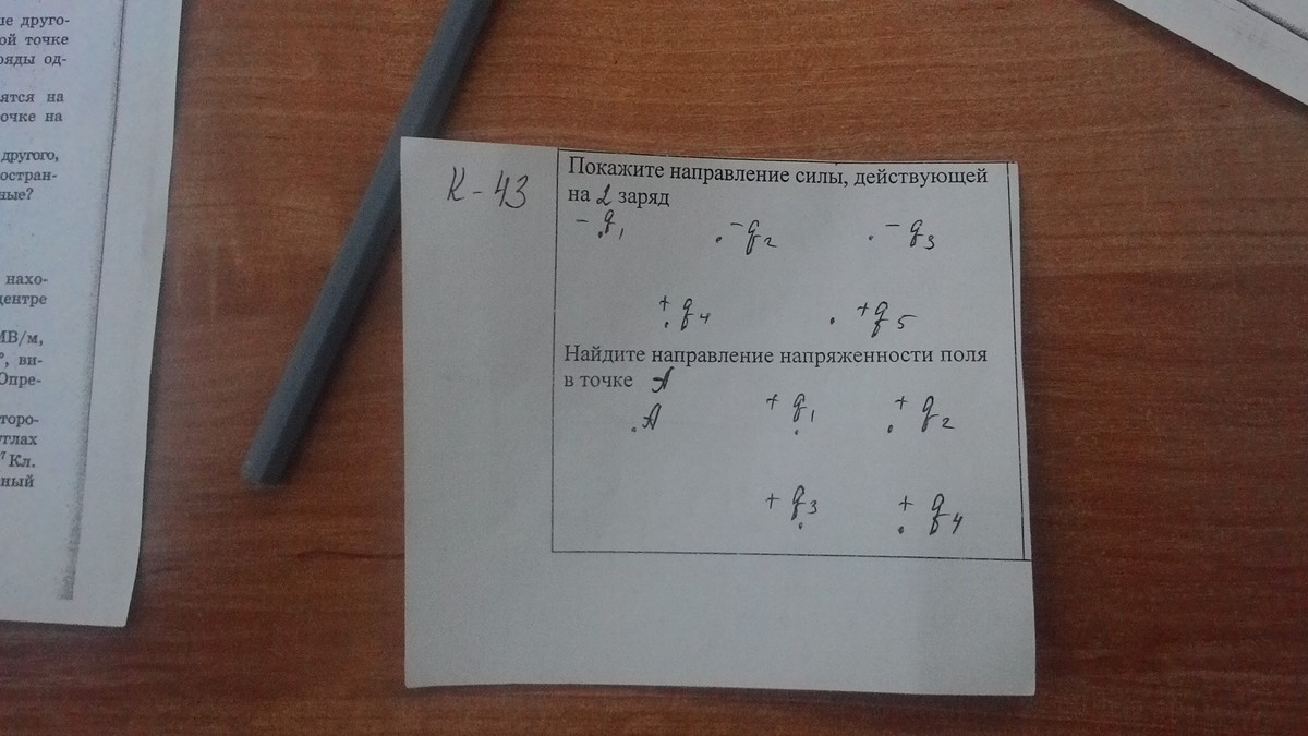 g1 и g3 с зарядом g2 одноименные, поэтому их силы будут направлены от g2. А g4 и g5 будут притягиваться ко второму заряду.