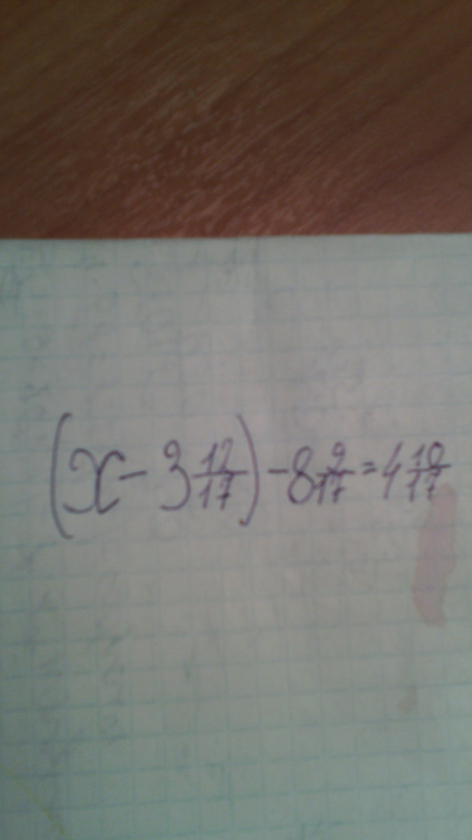(x отнять три целых двенадцать семнадцатых)-восемь целых девять семнадцатых =четыре целые десять семнадцатых