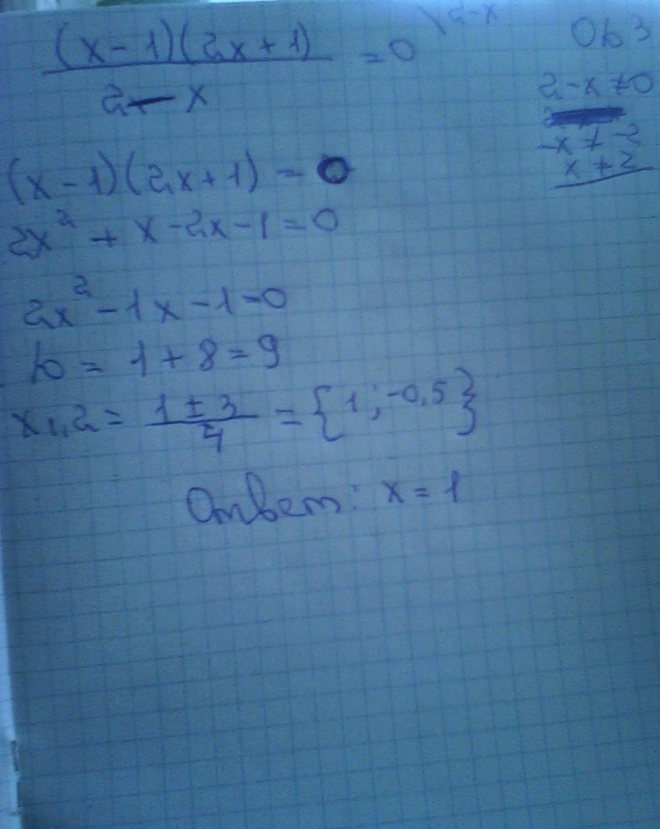 Решите уравнение (x−2)(2x+1) 2−x=0 (Если уравнение имеет больше одного корня, то в ответе запишите больший из них.) КАК решить??