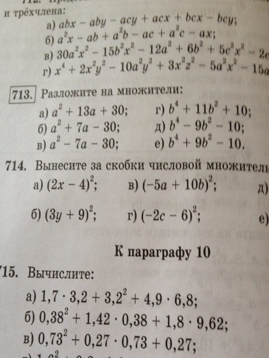 г) b⁴+11b²+10=(b²+10)(b²+1)