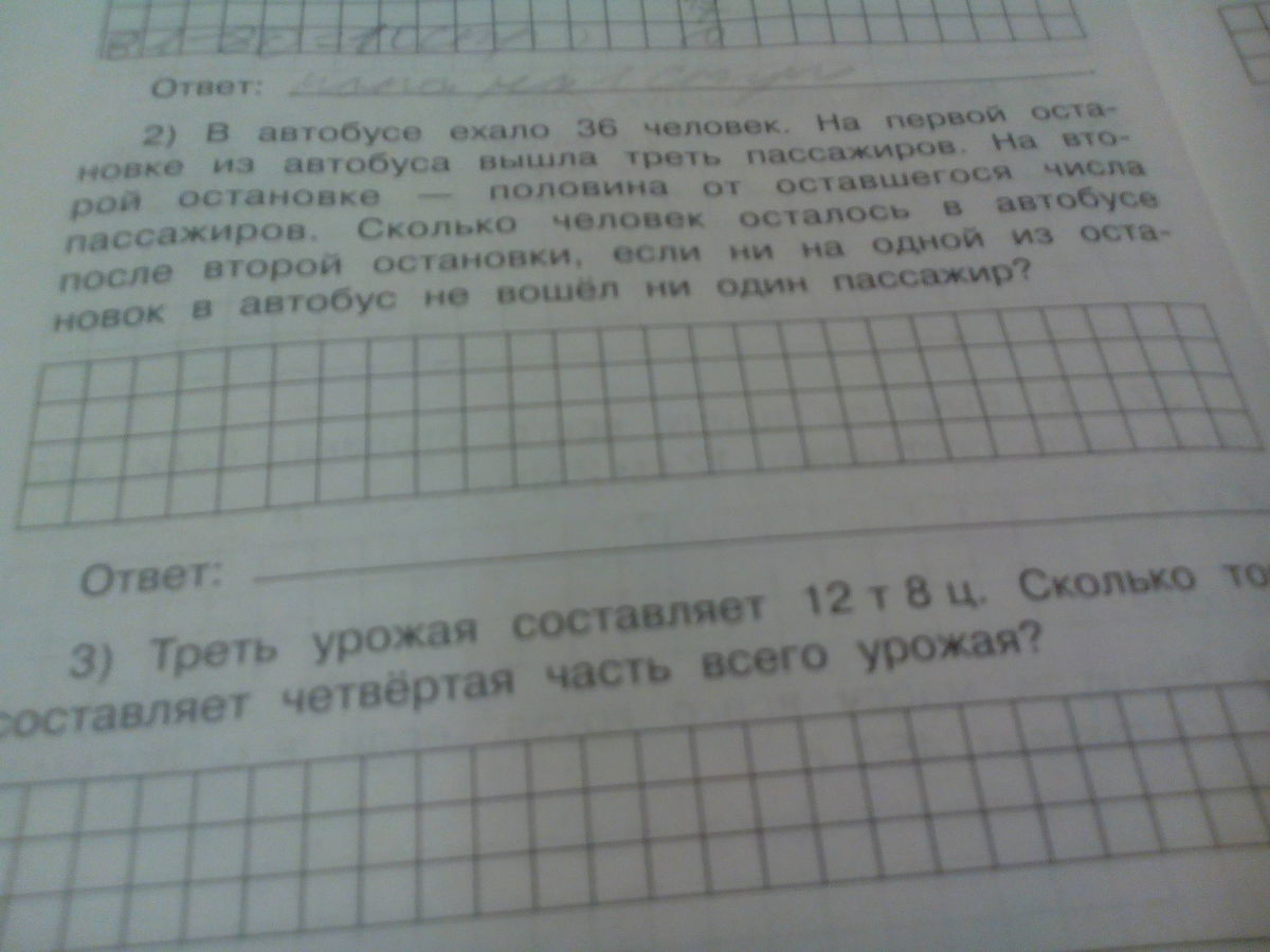 1)36-12( треть пассажиров)=24 пассажира осталось после первой остановки