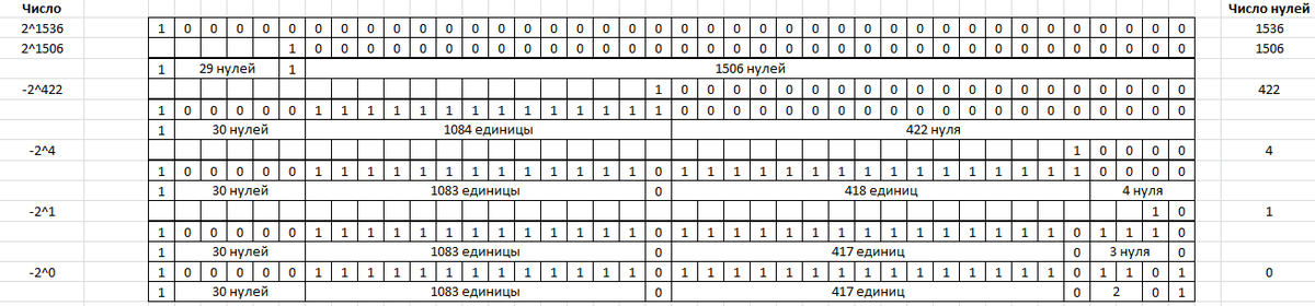 2) Сколько единиц в двоичной записи числа 8^502 – 4^211 + 2^1536 – 19?