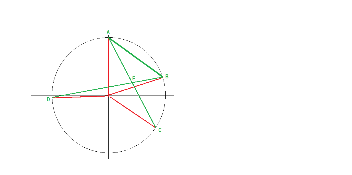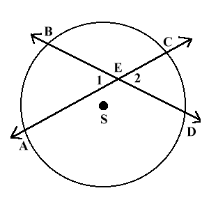 Углы,образуемые хордами,равны полусумме дуг,на которые угол опирается.