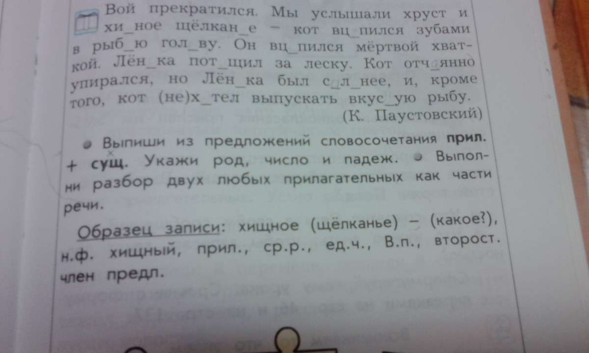 Вкусную(рыбу)—(какую?)н.ф. вкусная,прил.,ж.р.,ед.ч.,В.п.,втором.,чл.предл.